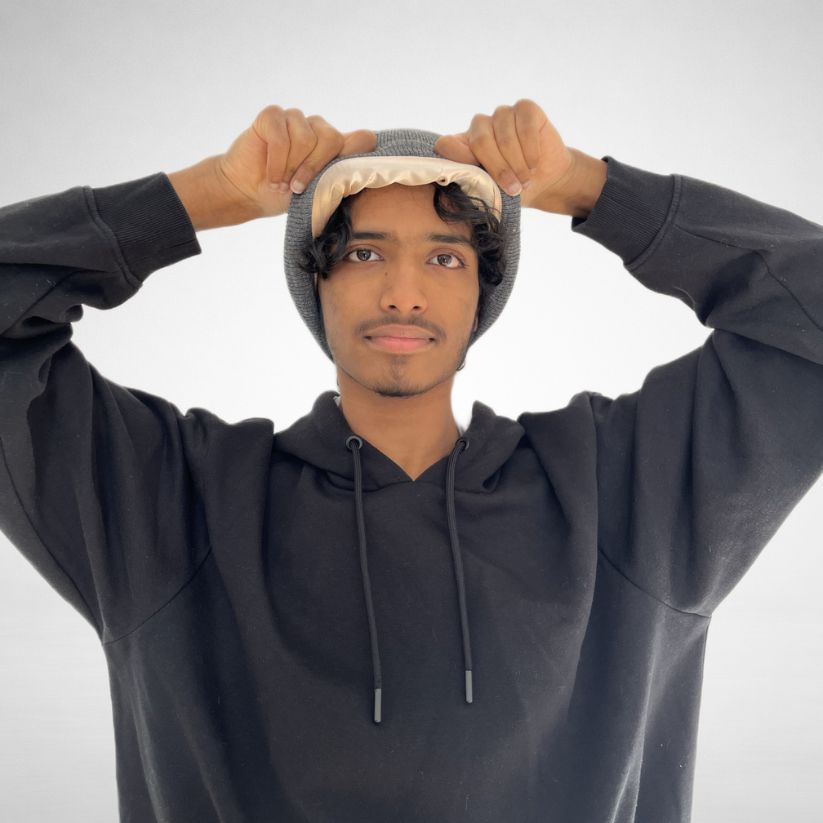 Ce bonnet doublé de satin est pensé pour préserver l'hydratation et protéger tes cheveux et ton cuir chevelu, en limitant la casse et la chute liées aux frottements.